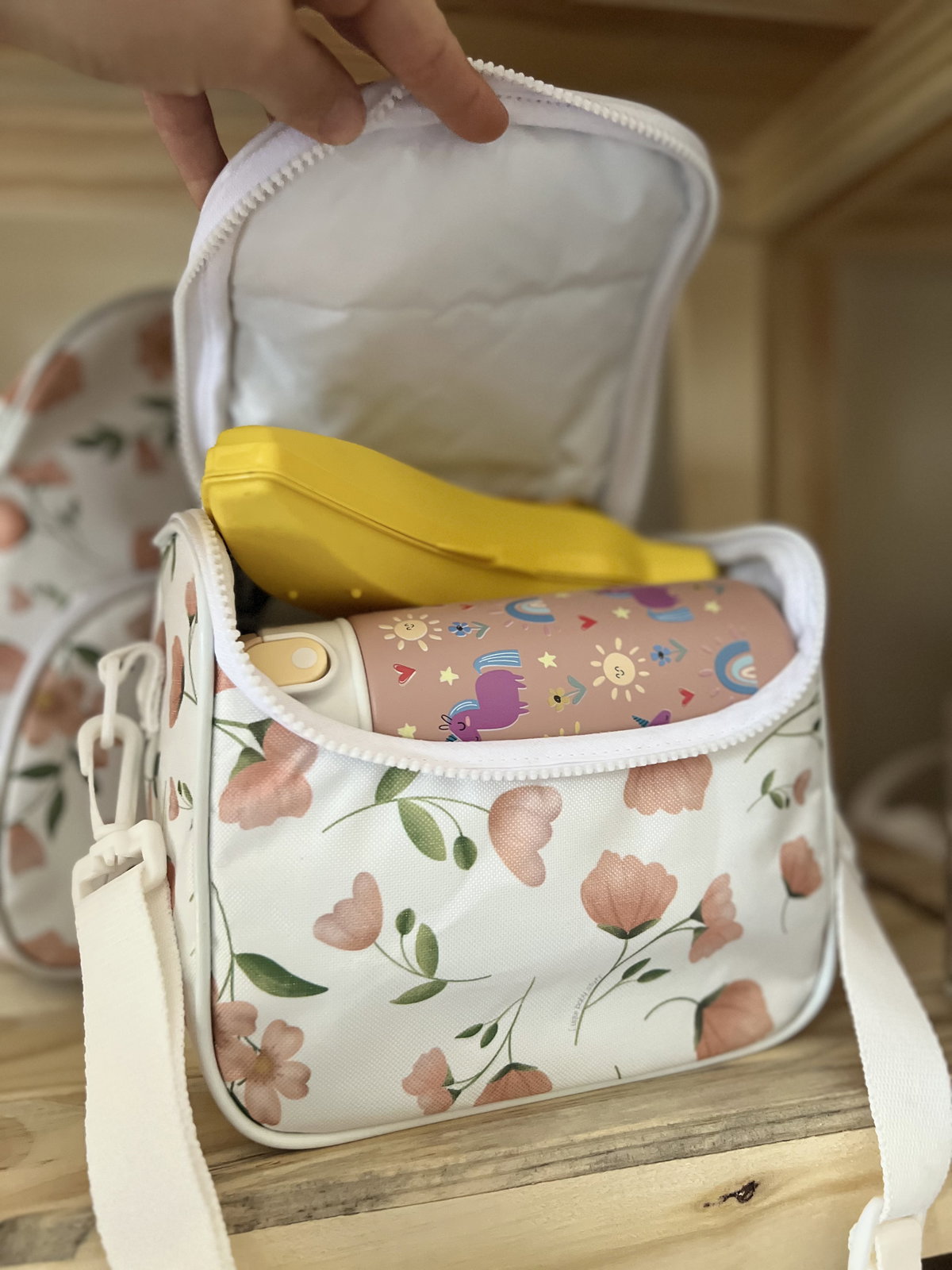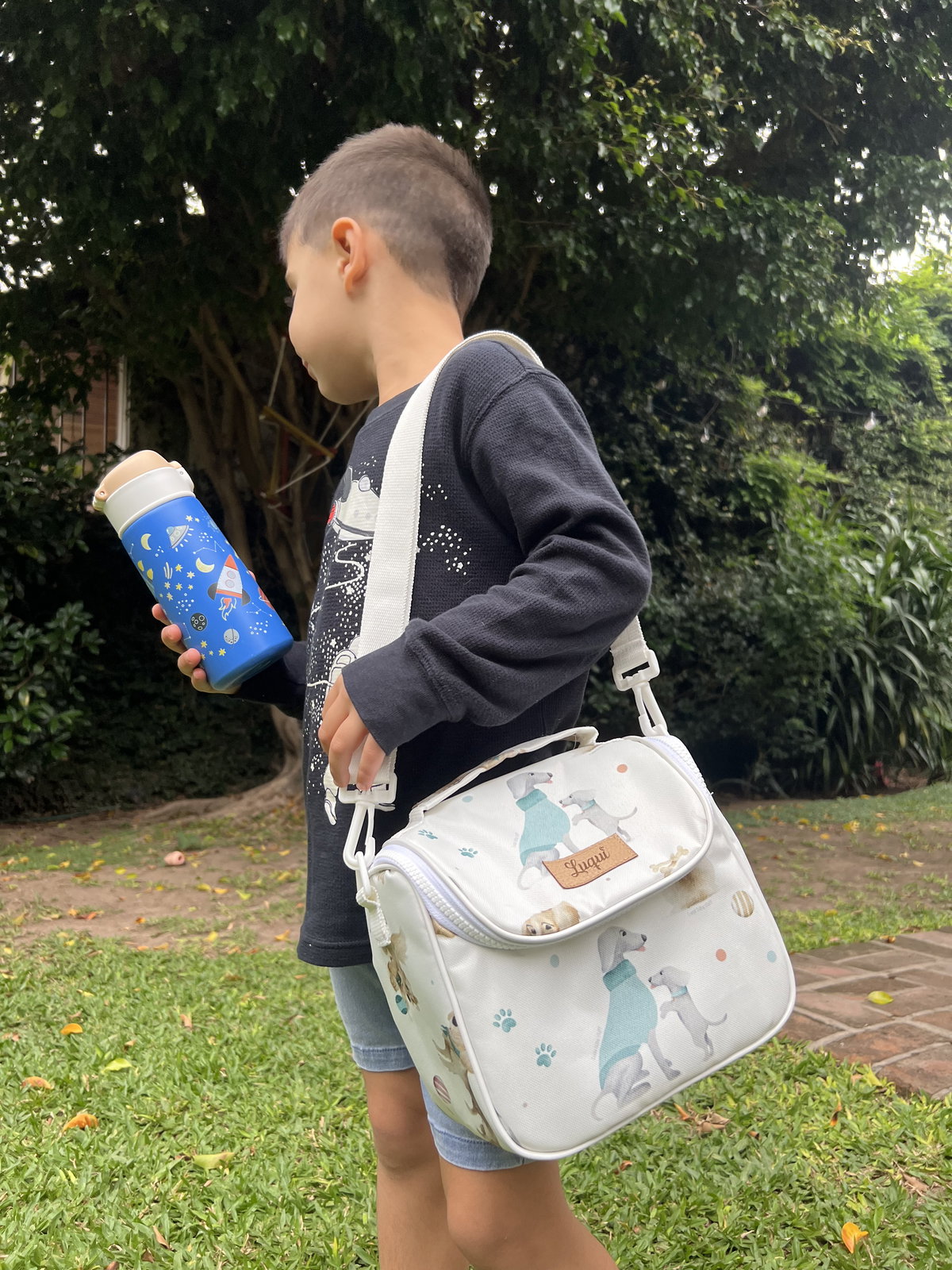 En el interior podés llevar comodamente: tupper pequeño, botellita, frutas y set de cubiertos.