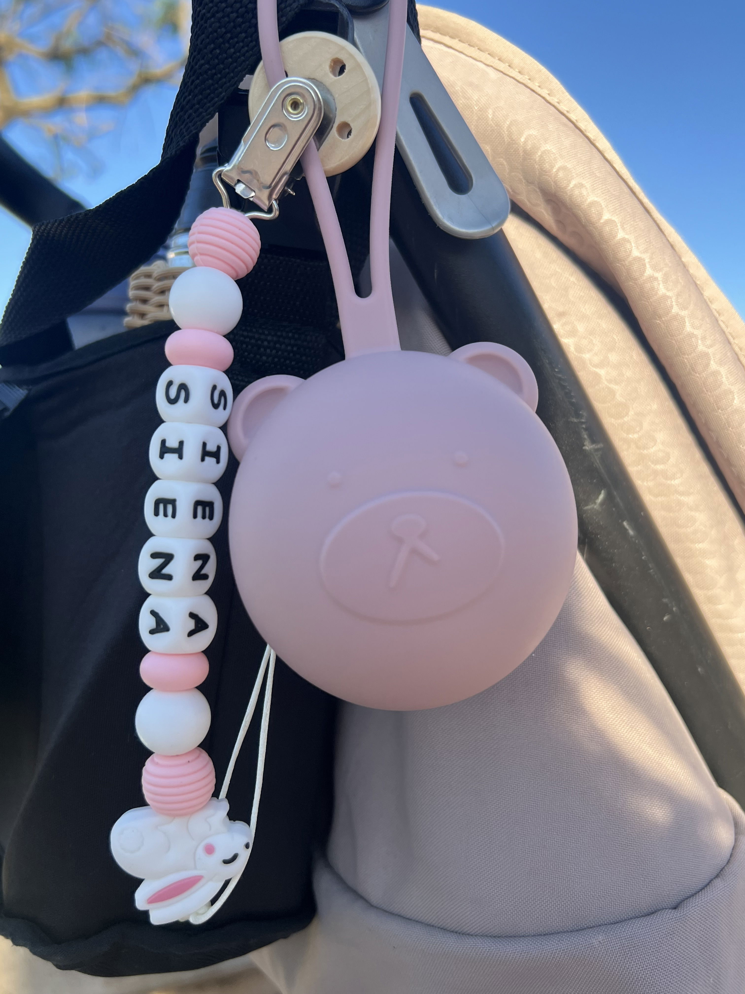 Diseñado para acompañar cada salida, este guardachupete de silicona es perfecto para mantener el chupete limpio y siempre a mano.