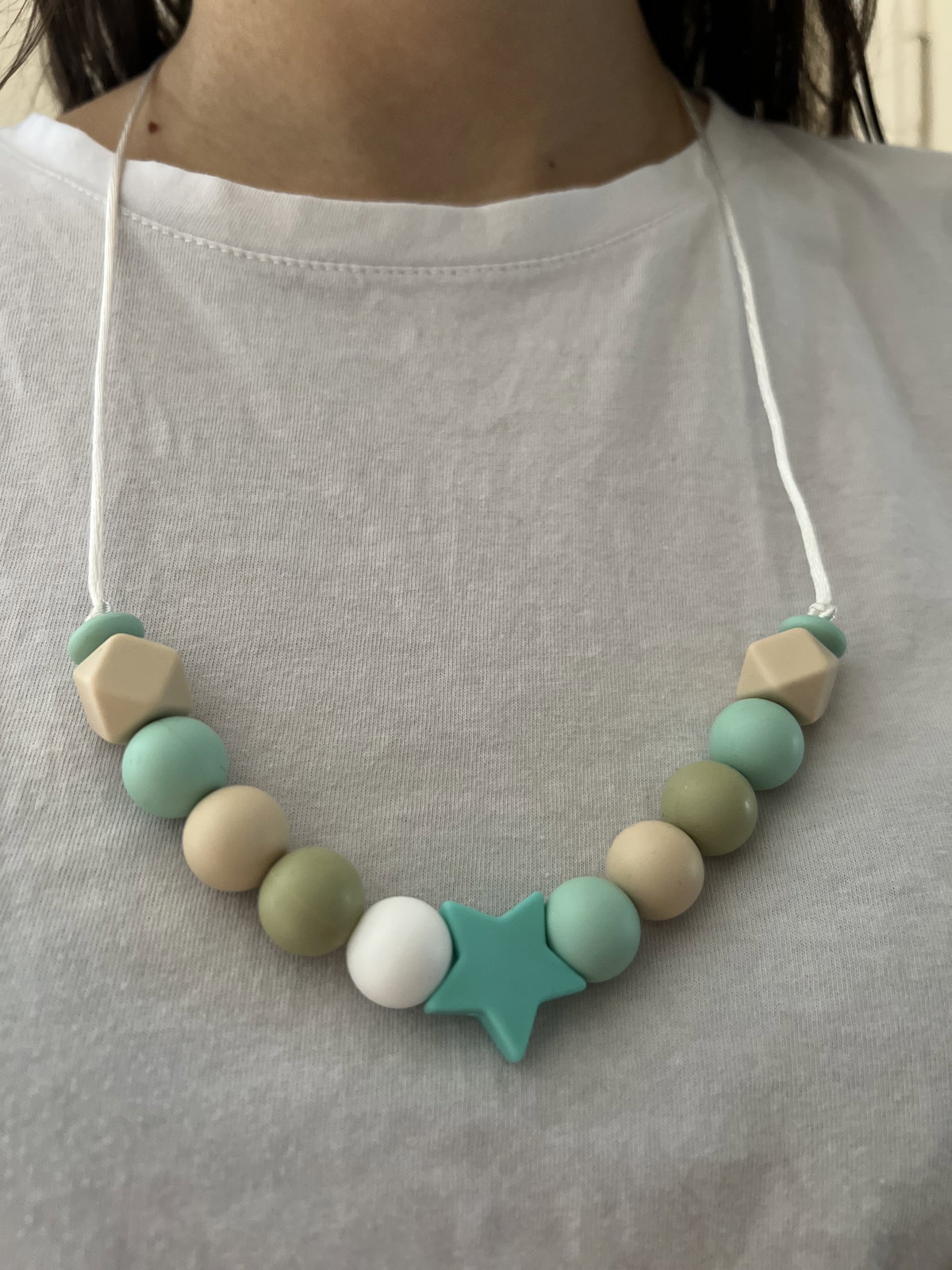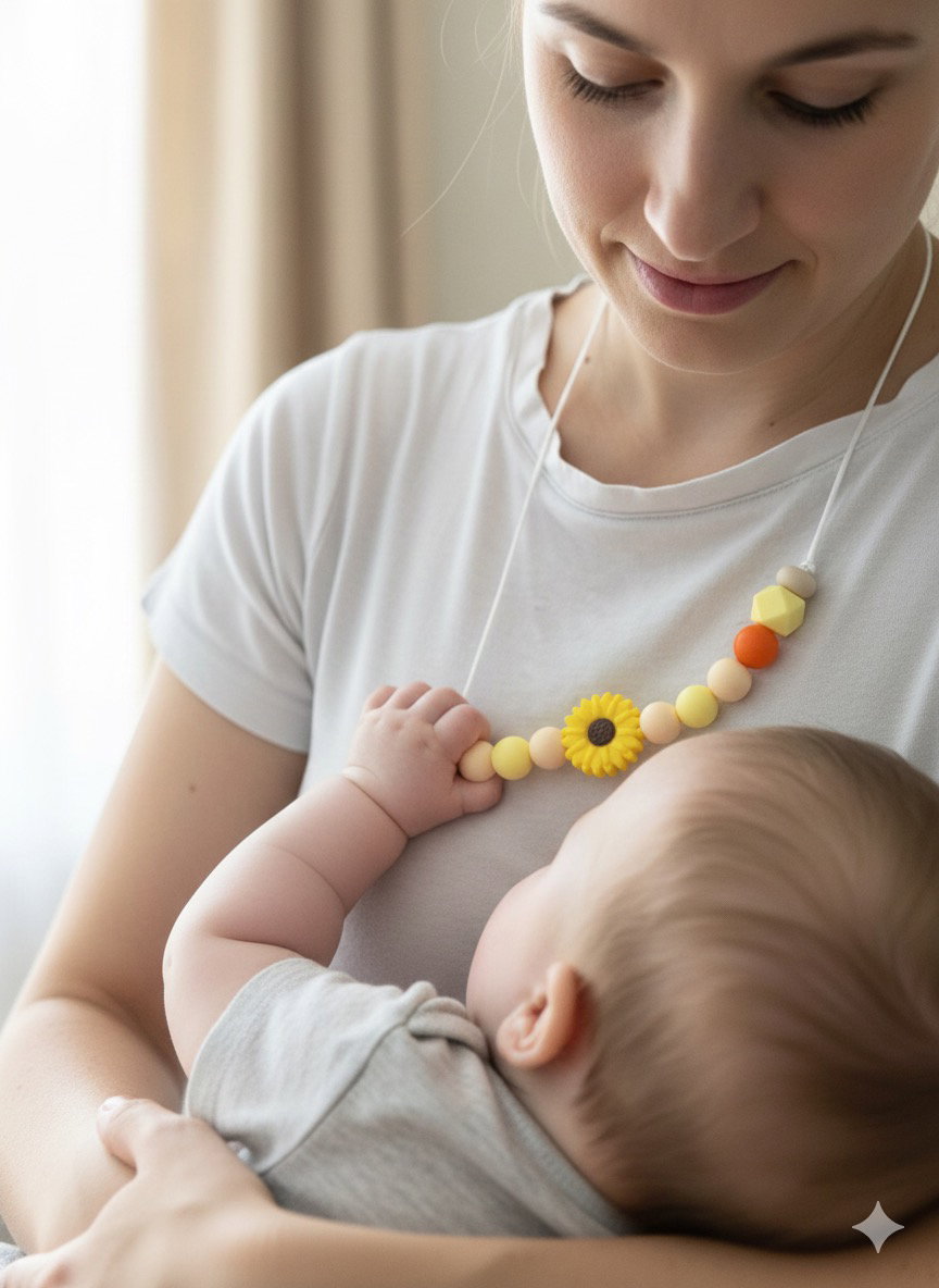 Nuestros collares de lactancia están hechos con cuentas de silicona grado alimenticio: suaves, seguras y libres de BPA, pensadas para acompañar los momentos de apego con tu bebé.