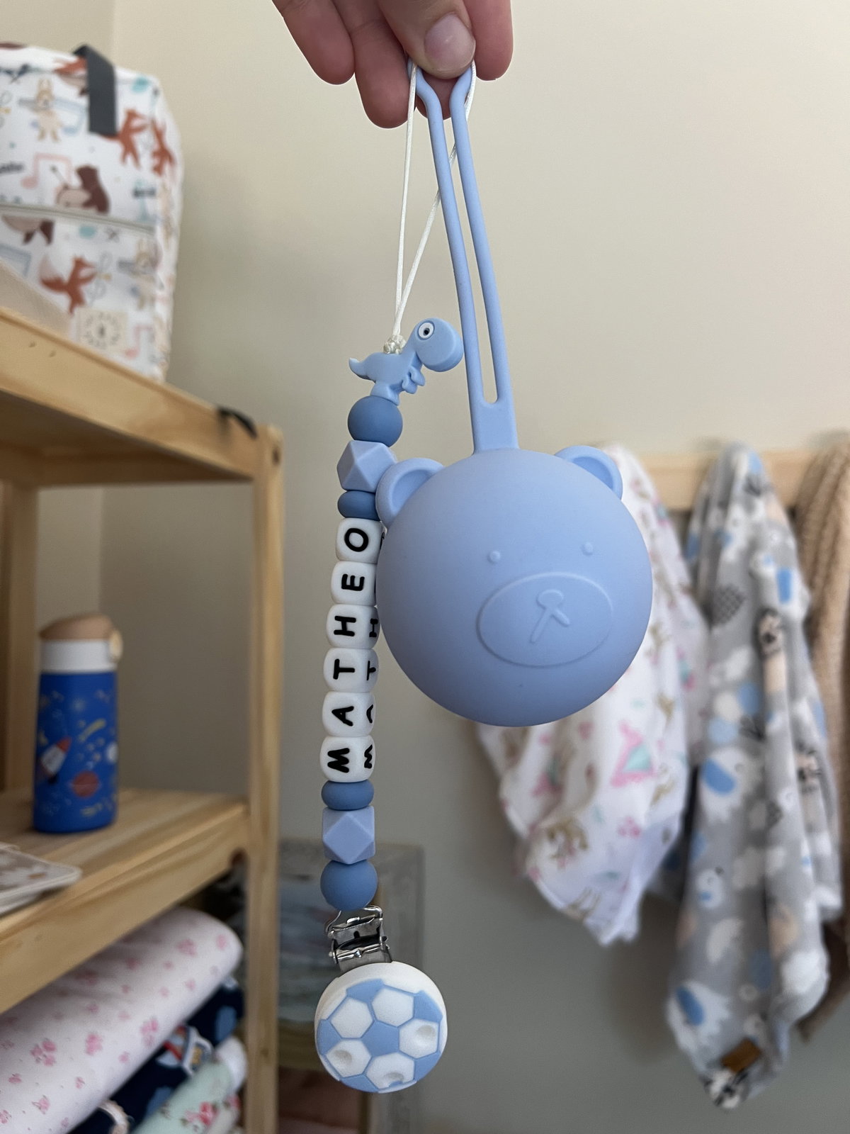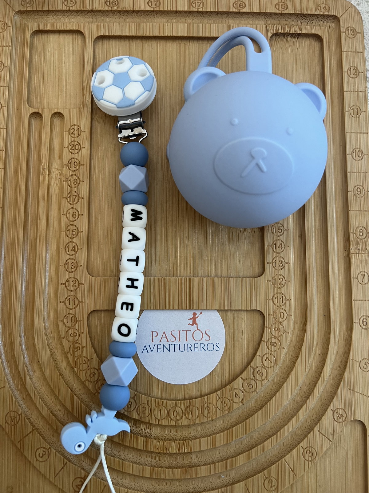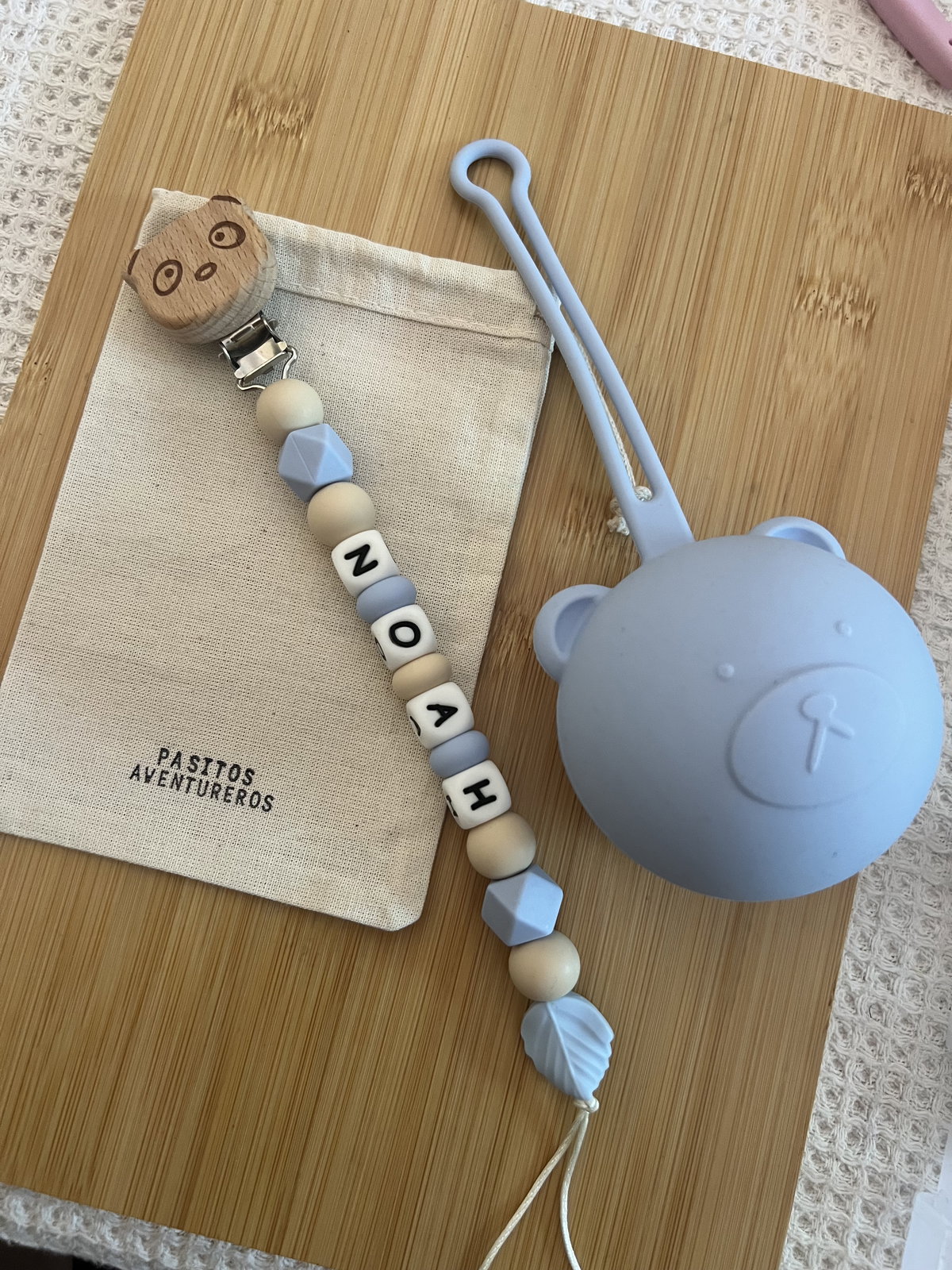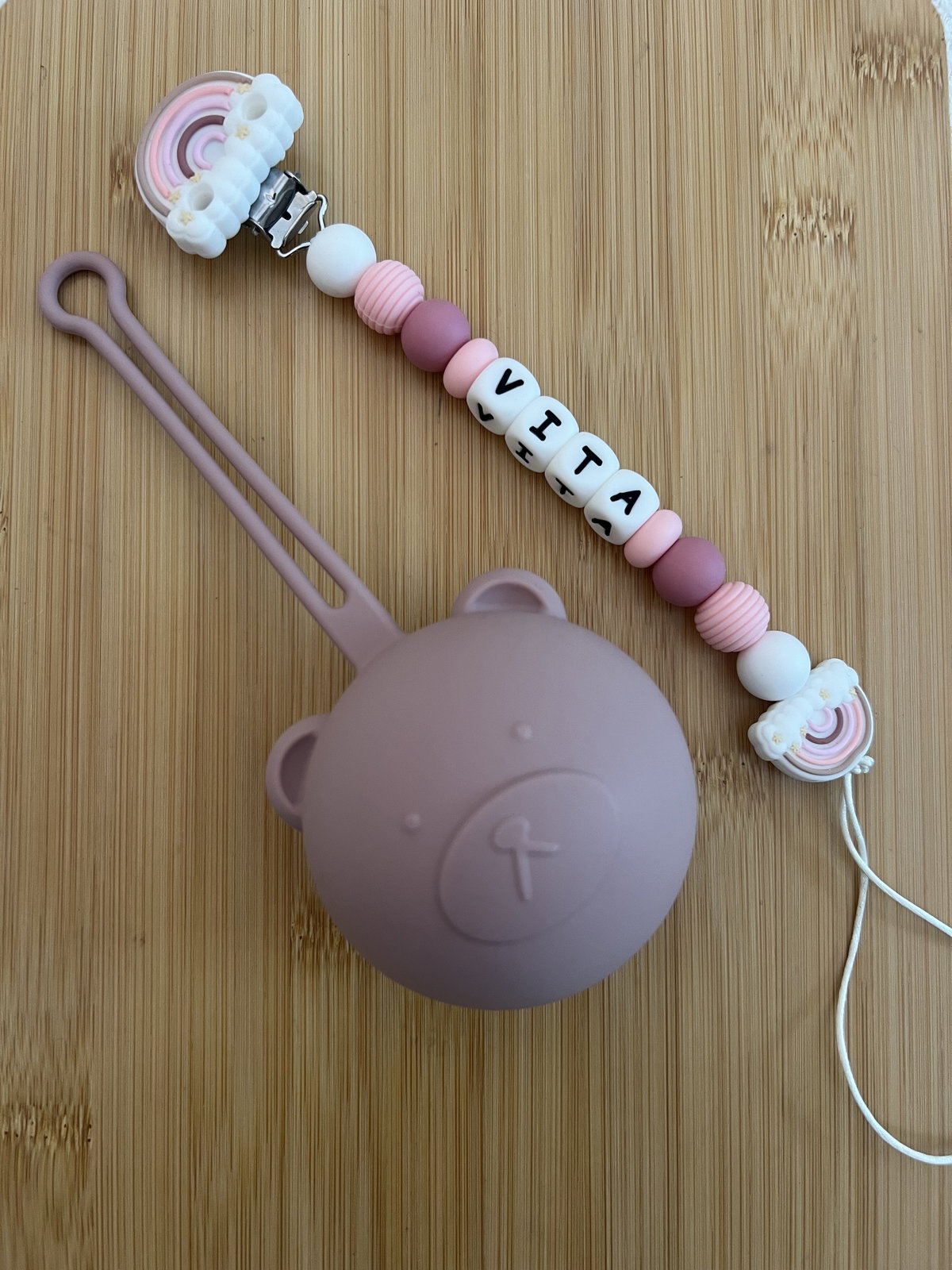 Incluye un portachupete 100% de silicona y su estuche a juego, ideal para mantener todo limpio y a mano.