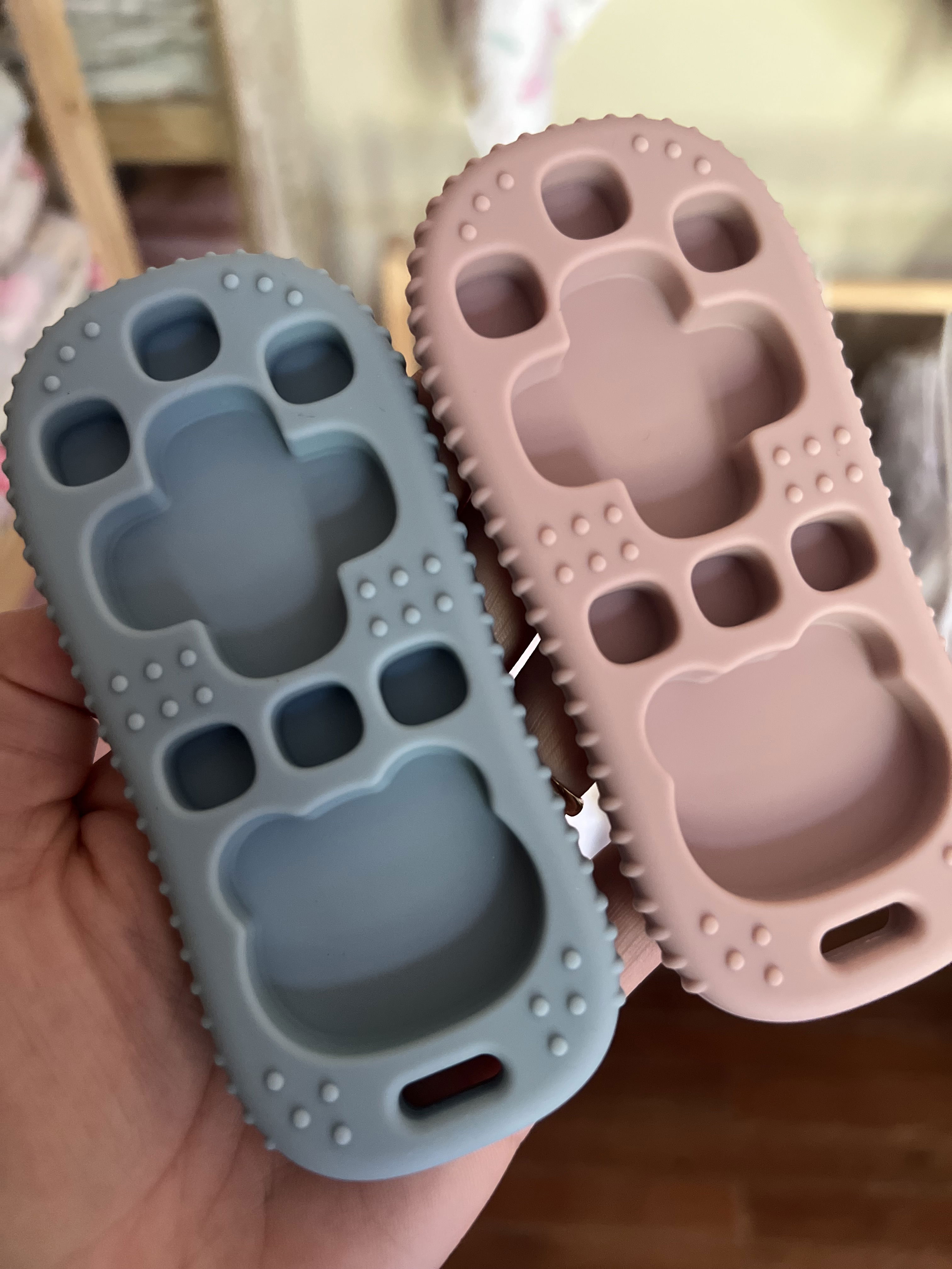 Nuestro mordillo con forma de control remoto es el favorito de todos los bebés curiosos. Está hecho 100% en silicona grado alimenticio, súper suave y seguro para aliviar las encías durante la dentición.